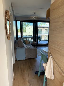 A 2023- ban átadott 54 nm-es lakás a második emeleten található , Balatonra néző panorámával.