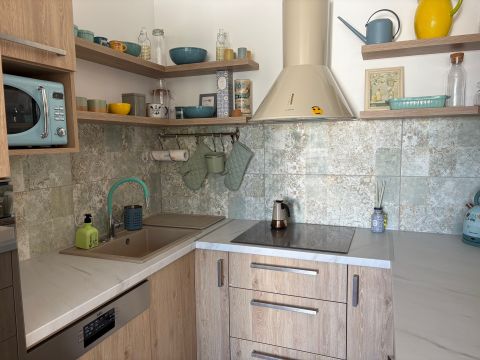 Modern, gépesített konyha,stílusos ,igényes burkolatok, bútorok , napfényes terek jellemzik a nyugati fekvés lakást.