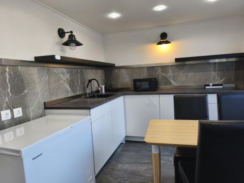 Közművek közül a villany, víz bevezetésre került, hűtését-fűtését inverteres klímával lehet megoldani.