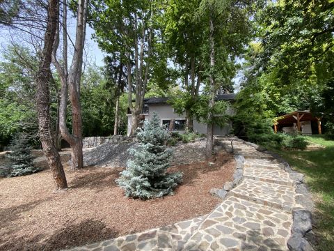 A teraszos kialakítású kert , az ősfás környezet nyugodt, intim légkört biztosít a lakók számára.