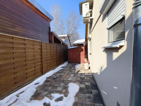 A ház szigetelt, térkövezett udvarral, hőszigetelt nyilászárokkal. Ablakok szunyoghálóval, redönnyel ellátottak.