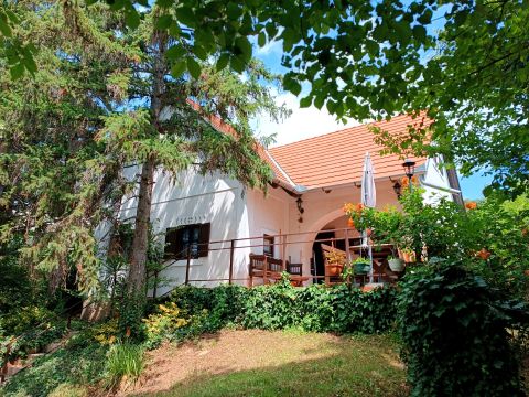 Révfülöp eldugott kis szegletében, hatalmas fák rejtekében áll ez a meseszerű ház, amely fiatal kora ellenére a régi korok nemességével tündököl.