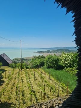 Badacsonyban, közvetlenül a hegy bazaltorgonái alatt, gyönyörű erdei környezetben található ez a kis nádfedeles nyaraló és a hozzá tartozó vendégház.