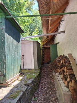 A vendégház alsó szintje fürdőszobával, tárolóval, felső szintje egy előszobával és hálószobával rendelkezik. Fűtése a beépített kályhával hidegebb időszakokban megoldható.