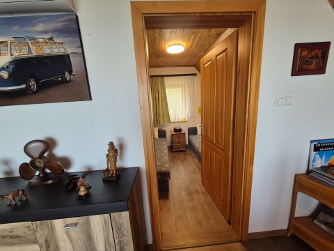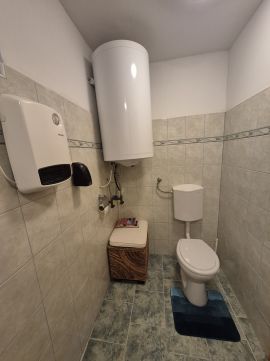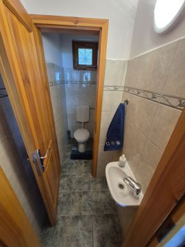 Innen nyílik még egy vendég mosdó, valamint egy kis közlekedő is, ahonnan a fürdőszobát és a kamrát közelíthetjük meg.