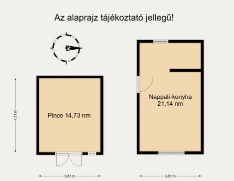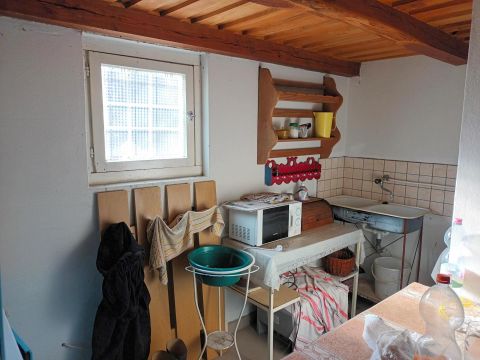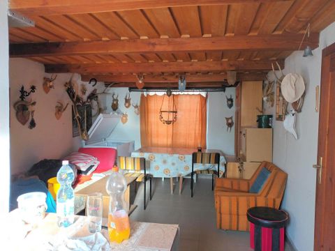 A házban a felső szinten egy 21,14 nm-es nappali-konyha helyiség került kialakításra, nagyon hangulatos, fagerendás mennyezettel, a padló járólappal burkolt. Az alsó szinten egy 14, 73 nm-es pince/tároló helyiség van.
