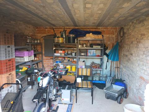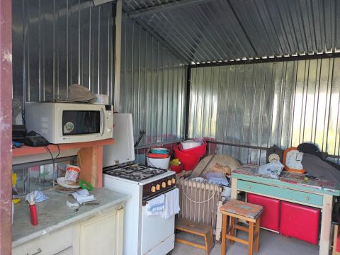 A telek másik végében egy 15 négyzetméteres, vaslemezzel borított tároló építmény is elhelyezésre került.