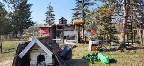 A kertben helyet kapott még egy tároló, kutyaól, halas tó.
