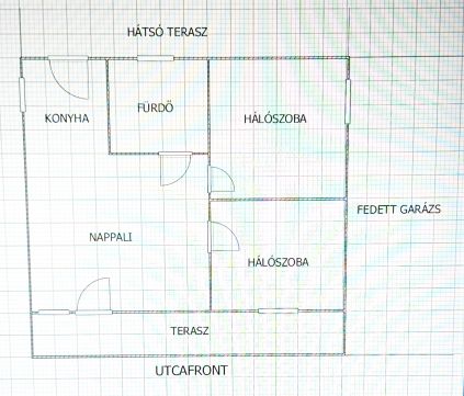 Elosztása :- 2 szoba , egy légtérben : tágas nappali, konyha-étkező , fürdőszoba, tároló, fedett első és hátsó terasz.