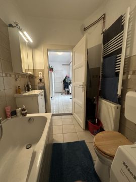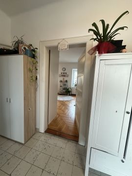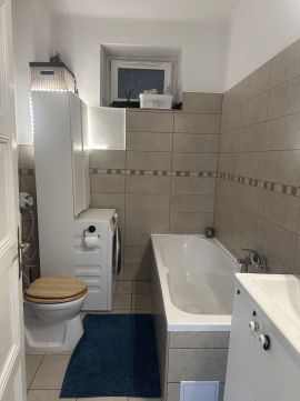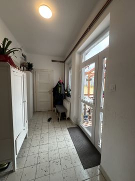 A tágas közlekedőből minden helyiség elérhető, köztük a szépen felújított fürdőszoba is. A nagyszoba valóban nevéhez méltó: tágas, elegáns, világos, levegős tér, ahol a gázcirkó fűtés mellett egy cseréppel fedett vaskályha is jelen van alternatívaként -mintha csak arra várna, hogy egy hűvösebb estén selymes meleget adjon.