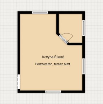 Félszuterén szint: A terasz alatt kialakított tágas konyha-étkező és egy praktikus kamra található.