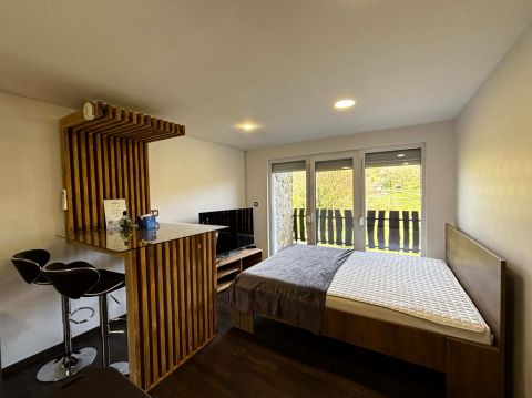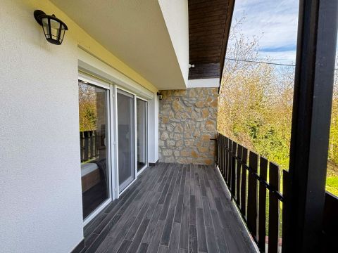 A szobából közvetlen erkélykapcsolat , mesés panorámával a völgyre és a környező hegyhátra, erdőre.