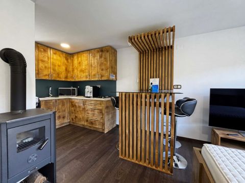 Az otthon melegét inverteres hűtő-fűtő klíma berendezés garantálja, alternatív megoldásként, elektromos fűtő panel és fatüzelésű kályha áll a lakók rendelkezésére.