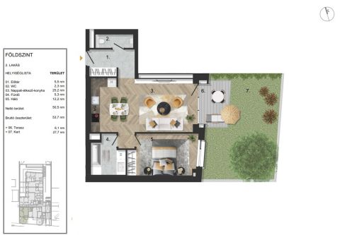 • a földszinti lakások mindegyike saját privát kerttel és/vagy nagy alapterületű terasszal rendelkezik