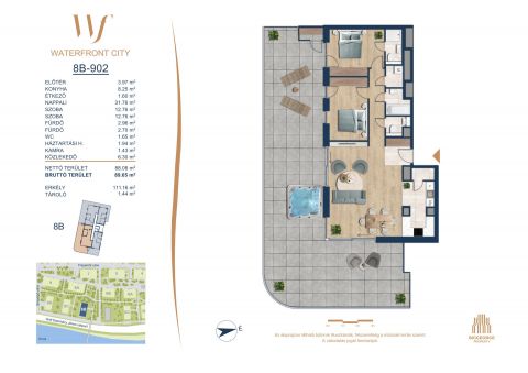 A Waterfront City egy új, modern városnegyed a 3. kerületben, ahol a természet közelsége és a városi kényelem tökéletes egyensúlyban van. A Duna-part közvetlen szomszédságában elhelyezkedő fejlesztés különleges atmoszférát kínál: a sétányt új épületek határolják, üzletekkel, kávézókkal és szolgáltatásokkal, amelyek élhető közösségi teret teremtenek.
