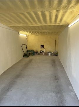 A garázsban áram van, új világítótestekkel és korszerű elektromos hálózattal felszerelve. Az aljzat 15 cm vastagságban újrabetonozva és bevasalva, a falak frissen vakoltak és festettek. A tető szigetelése is megújult, így a garázs száraz és jól szigetelt, időjárástól függetlenül biztonságos tárolást biztosít.