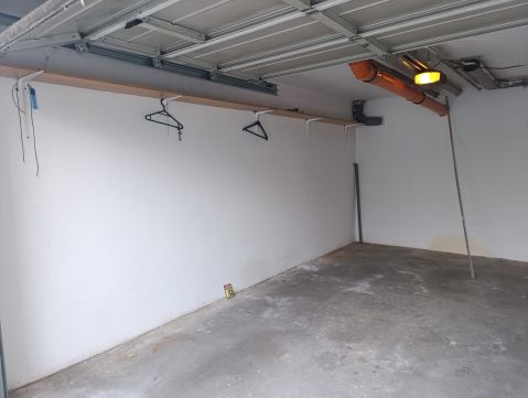 A garázs praktikus, elektromos működtetésű kapuval felszerelt, így kényelmesen és biztonságosan használható.