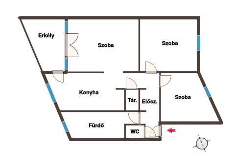 A lakás minden ablaka fehér, 6 légkamrás, 3 rétegű üvegezésű műanyag ablak, amely modern hang- és hőszigetelési elvárásoknak is megfelel.