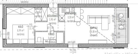 Eladó 1 emeleten 5-es lakás, alapterülete 42,55 nm , terasz 4,58 nm,.