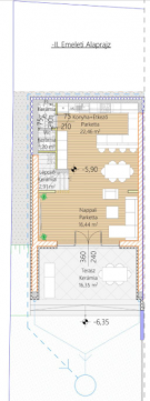 Az alaprajzi kialakítás kifejezetten fiatalabb generációs, gyermekes családok igényeit tartja szem előtt. A tér szívét egy amerikai konyhás nappali alkotja, amelyből közvetlen kijárat vezet a teraszra és a kertre. A szülői hálószoba saját gardróbbal és fürdőszobával különül el, a két gyermekszobához önálló fürdőblokk csatlakozik. A főhálóból nyíló teráasz páratlan kilátást kínál este a kivilágított Avasi Kilátó látványa koronázza meg a panorámát.