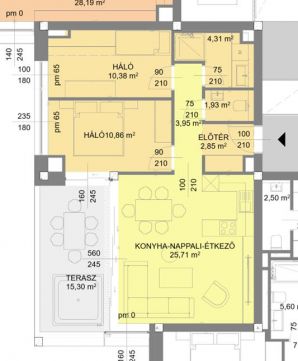 A penthouse-ok bioklimatikus pergolával felszerelt teraszai összenyithatók, illetve télikertként is funkcionálnak.