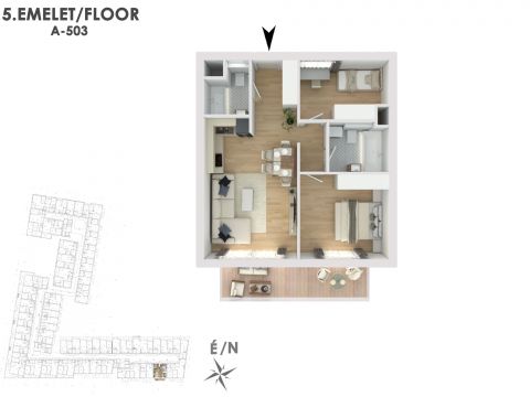 A lakások tervezésénél a modern minimalista trendek voltak irányadók, kiemelve a minőségi anyagokat és a kortárs kivitelezést.