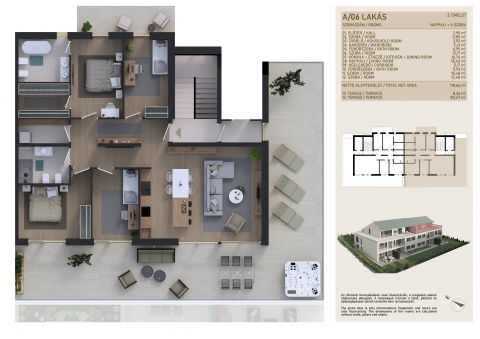 Az ingatlanban 48-119 nm közötti méretekben, a 1 szoba+nappalistól a 4 háló+nappalis elosztásig választhatunk, mindegyik lakáshoz saját tágas terasz is tartozik. A 2. emeleten 70 nm-es terasszal rendelkező PENTHOUSE LAKÁSOK kerülnek kialakításra, melyek igény szerint megoszthatók. A lakások minőségi burkolatai-szaniterei jelenleg egyedi igények szerint válaszhatók! Lehetőség van 22db teremgarázshely megvásárlására is nettó 8 M Ft/db áron!