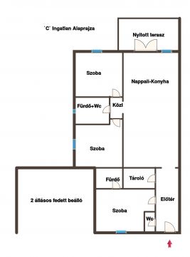 'C' ingatlan:nappali+3 szoba (83nm)+15,05 nm nyitott terasz+fedett beálló (30,99 nm), telek: 700 nm