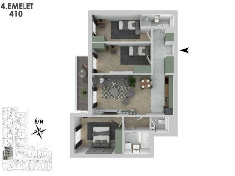 Költséghatékony fenntarthatóságát, modern gépészeti megoldások biztosítják! Az emeleten elhelyezkedő teraszok, jelentősen csökkentik a homlokzat felmelegedését a forró nyári időszakban.  A hőmegtartást korszerű nyílászárók,  beépített rejtett redőnyök és 20 cm vastag fal szigetelés biztosítja.