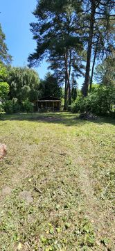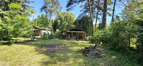 Szigetmonostoron Horányban az erdő szélén lévő telek, faházzal eladó