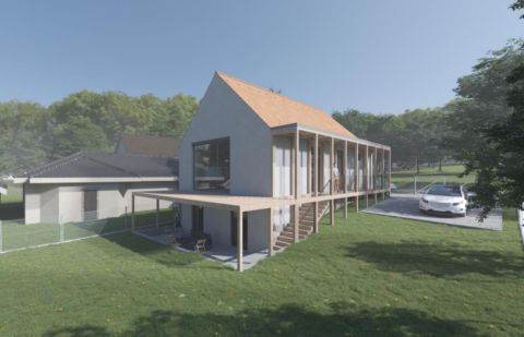 Tervezett ingatlan paraméterei: 3 x 77 nm, egy nyitott galériával, ahol ki lehet alakítani akár szobákat is. A fűtés hőszivattyúval van megtervezve.