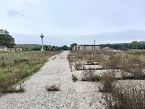 A telken található egy raktár épület és egy vízgyűjtő torony. Rendelkezésre áll ipari áramerősség.