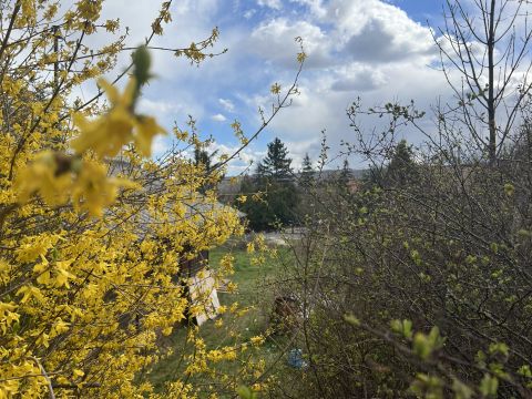 A telek enyhén dombos, fásított, így kiváló adottságokat nyújt kertészkedéshez, pihenéshez vagy akár panorámás terasz kialakításához.