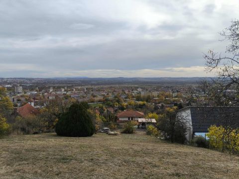 Pécsen az Alsómakár dűlőben eladó gyönyörű panorámával rendelkező, összközműves nagyméretű építési telek.