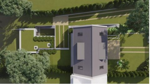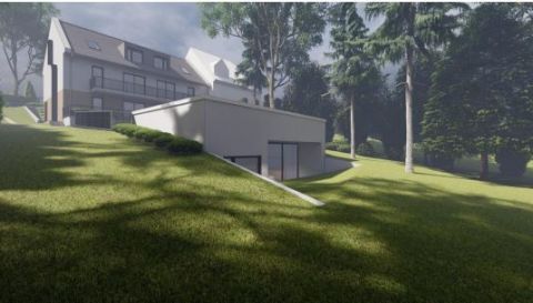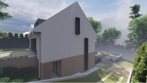 Tervezett épület: 4 lakásos társasház, 4 garázshellyel és további felszíni beálló helyekkel.