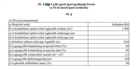 GIP-1 – egyéb ipari gazdasági övezet (Fő út menti ipari területek)