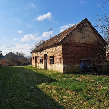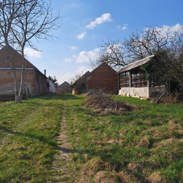 Az egyik telek É-D fekvésű, aszfaltos útról megközelíthető. A közművek közül villany- szennyvíz-csatorna bekötve, gázcsonk rákötési lehetőség az utcáról megoldható, a terület mérete 2269 m2. A telek utca felőli részén egy bontandó kb. 50 m2 tégla épület található, míg az udvar hátsó része enyhén lejtős, teli gyümölcsfákkal. LFK1 besorolású, falusias lakóövezetű, építkezésre kiválóan alkalmas a megfelelő szabályok és előírások betartása mellett. /Helyi Építési Szabályzatok, Önkormányzati rendeletek/