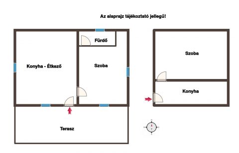 - nagyobbik ház mérete 54 nm. Szoba, konyha, tusoló+wc, fedett terasz