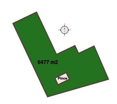 - Kialakítható legkisebb telekterület: 5.000 m2 - tehát a 6477 m2-es telekre egy épület építhető