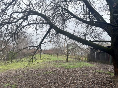 A telek két utcára nyílik, teljes egészében körbekerített, kiváló adottságokkal rendelkezik, jelenleg is jól termő gyümölcsfákkal beültetett: