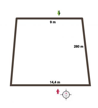 A telekre 60 nm-es lakóház, valamint ugyanekkora méretű gazdasági épület építhető.