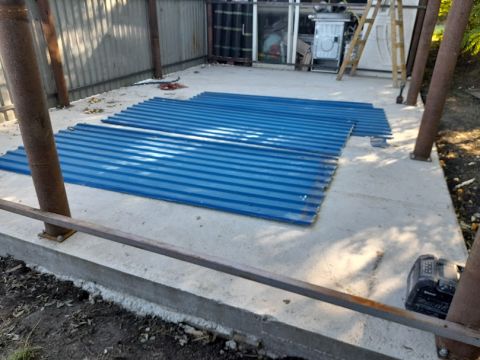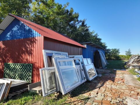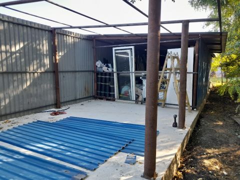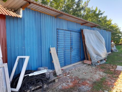 A telek egy részén három lemez szerkezetes, de beton alapra épített tároló vagy műhelyként is funkcionáló helyiségek találhatók.