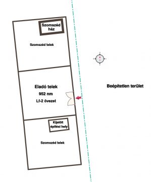 A "kivett beépítetlen terület" megnevezésű, 952 nm-es belterületi telek kb. 30 méter hosszú utcafronntal rendelkezik és teljesen sík. Az elektromos közmű és a víz telken belül található, a csatornahálózat az utca elejéig tart. Az utca csatornázására rendelkezésre állnak a szükséges önkormányzati engedélyek és kivitelezési tervek. A telken a szomszédnál is látható módon az északi telekhatár közelében alakítható ki lakóépület, teret hagyva egy a hatalmas udvarunkra déli tájolású kilátásnak. Akár mobilház is építhető rá.