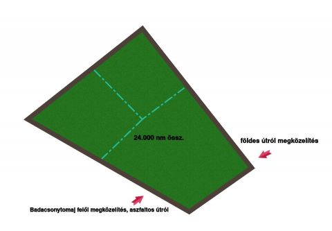 Aszfaltos útról megközelíthető, de tartozik hozzá egy földúti megközelítési lehetőség is, tehát 2 bejárata is van az ingatlannak, mely akár meg is osztható, de elsősorban együtt eladó!