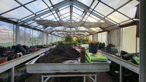 A telken egy körülbelül 100 m²-es üvegház található, amely fűthető gázkazánnal és szellőztető rendszerrel van felszerelve, így alkalmas csemeték és különféle növények nevelésére. Emellett két fóliaváz is rendelkezésre áll. A területen kiépített öntözőrendszer működik.