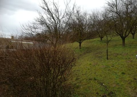 A telek részben gyümölcsfákkal beültetett, enyhén dombos fekvésű, kellemes zöldövezeti részen helyezkedik el. A telek utcafrontja kb. 20 méter széles. Az összes közmű (víz-, villany-, csatorna-, gáz) az utcában, a telek előtt elérhető.