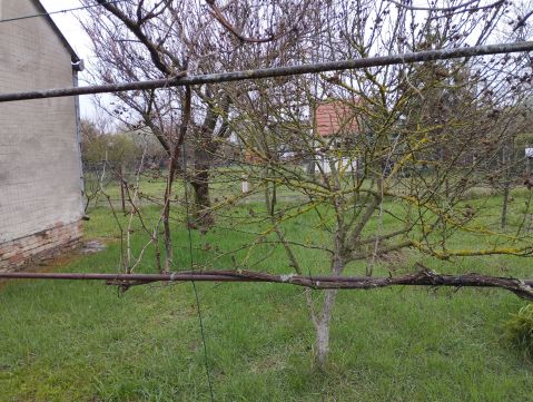 A telken jelenleg egy bontásra váró épület, egy fészer, valamint egy fóliasátor található. A telken termő gyümölcsfák és szőlőlugas található.