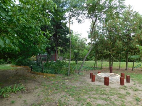 A területen termő gyümölcsfák, szőlőlugas, zöldséges kert, 2db sütögető hely, hatalmas diófák vannak.