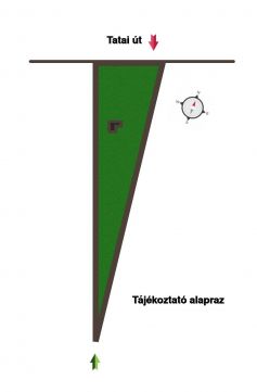 Tatai/Banai úton, közvetlenül az Ipari Park mellett, 871 m2 alapterületű, háromszög formájú, körberekerített, murvás telek, tároló funkciójú, alápincézett faházzal kiadó.