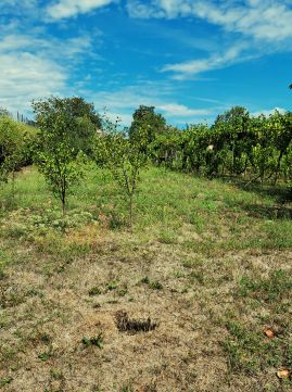 A sík felületű, kertként, gyümölcsfákkal, szőlővel ültetett, bekerített terület zsákutcából nyílik.